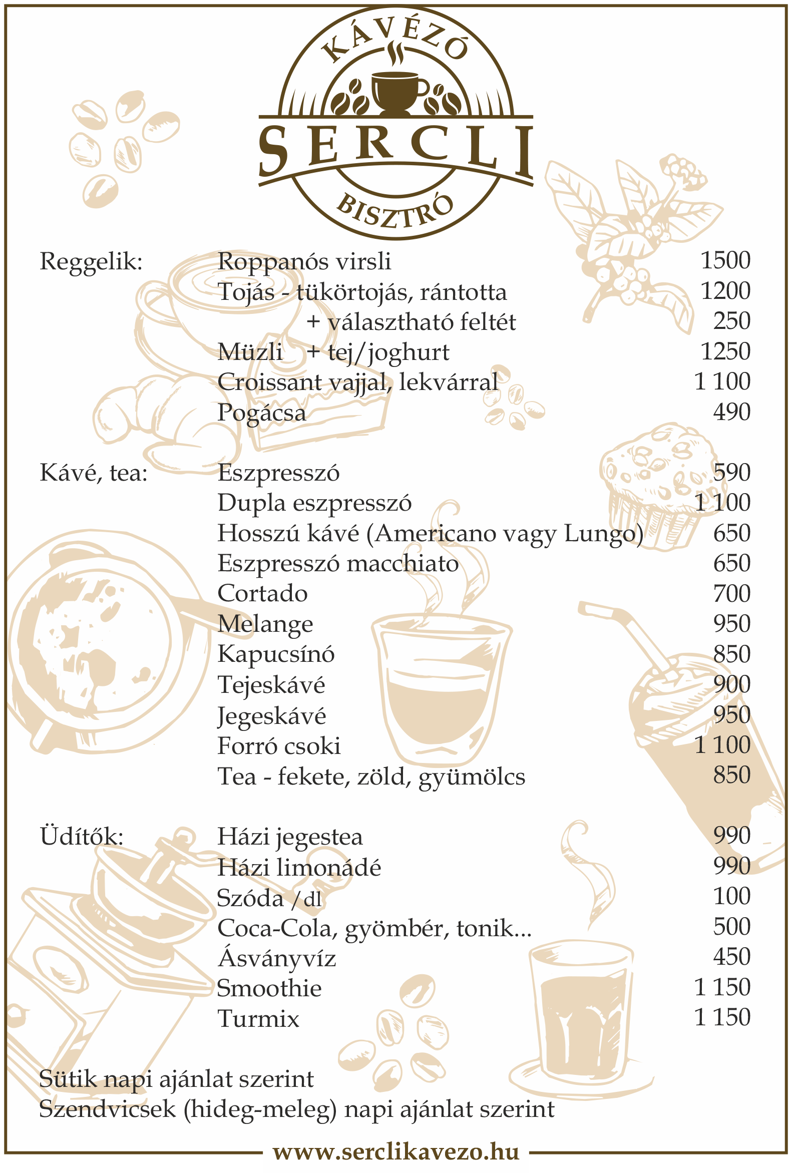 Üdvözöljük a Sercli kávézó és bisztró oldalán!